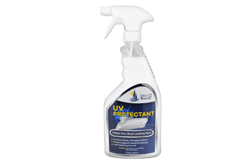 TriNova UV Protectant Spray - for Vinyl Plastic Rubber Fiberglass Leather More - Prevents Fading Cracking from UV Damage - Restores Color Repels Dirt - Free of Residue 18 oz. Marine Aerospace Protectant is a premium protectant designed to safeguard boats and boat equipment against the damaging effects of daily exposure to UV rays. When dried it has as clear finish unlike the polyurethane products which will leave a sticky yellowish residue.