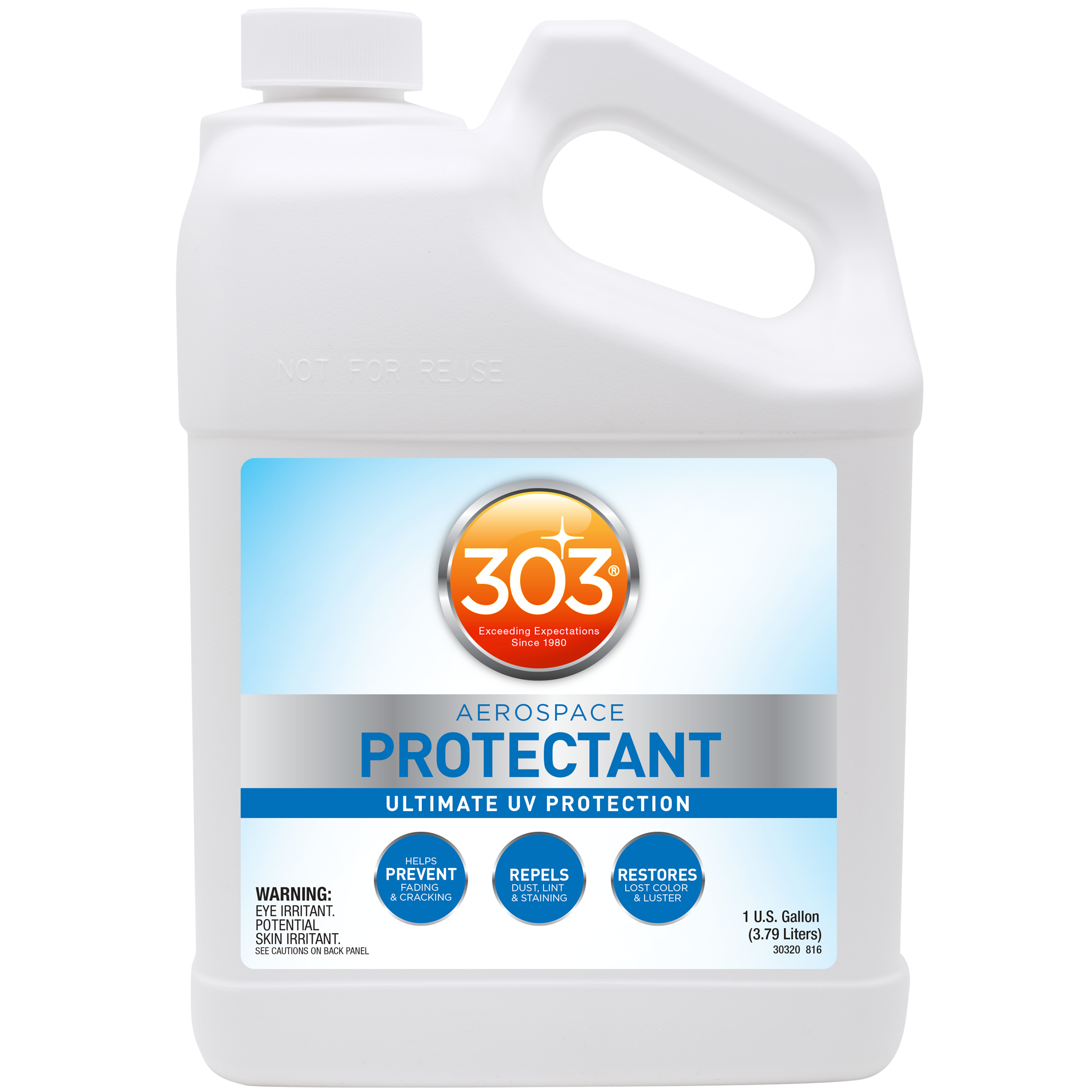 Its ideal for use on rubber plastic eisenglass and of course vinyl. 303 30313-CSR UV Protectant Spray The 303 30313-CSR UV Protectant Spray will brighten many types of surfaces to make them look like brand new. Made in the USA.