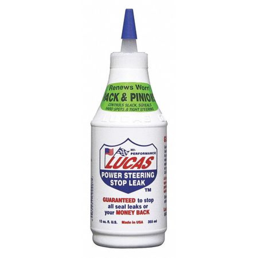 Lucas Oil SYNTHETIC FORK OIL EXTRA HEAVY 20 WT 69000. Lucas Oil 10011 Power Steering Stop Leak The 1 quart liquid stops rack and pinion problems and in slowing down any major leak problem really well. Results will be immediate and long lasting. Lucas 10008 Power Steering Stop Leak - 12 oz Lucas 12Oz Power Steering Stop Leak Removes Hard Spots And Stops Most Leaks Or Your Money Back. It reduces stiffness and friction in your power steering. It guarantees drivers highest road safety with high resistance to FADE brake power loss in extreme situation. Lucas Oil SYNTHETIC FORK OIL EXTRA HEAVY 20 WT 69000. Lucas Power Steering Fluid is a general purpose product. Lucas Oil 10008 Power Steering Stop Leak Steering Sealer.