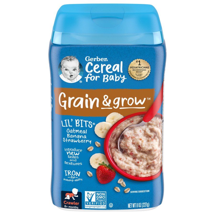 8 oz Container Pack of 6 49. Support your little ones growth and development with Gerber Powerblend Cereal the first-of-its-kind infant cereal made with whole grains veggies and plant-based protein. It can be mixed to a spoon-hugging texture and the added textured pieces help babies learn to chew and mash.