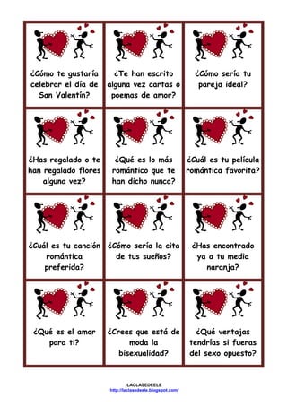 Jxyzzy_x Valite. 1 - 36 de 86 juegos. El Día de San Valentín o Día del Amor y de la Amistad es una celebración que le gusta mucho a los niños porque les permite mostrar sus sentimientos hacia las personas cercanas con los que establecen lazos estrechosRegularmente este día se celebra con convivios fiestas e intercambios pero dentro de la clase se puede utilizar este PowerPoint que es muy divertido ya.