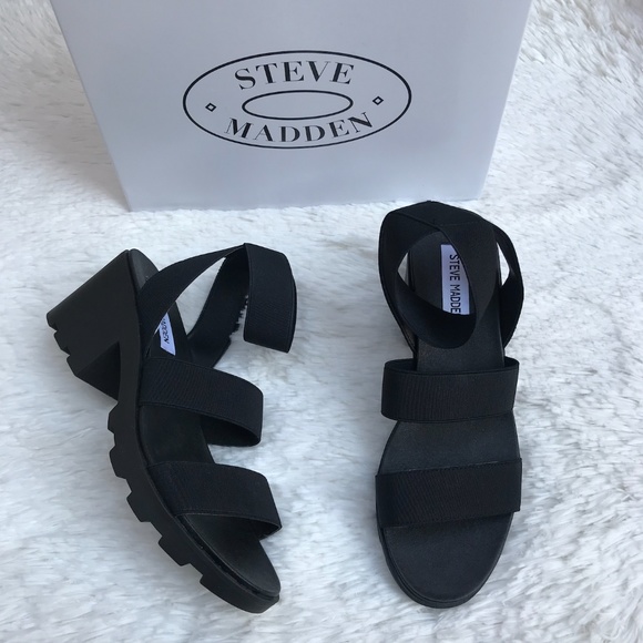 Originally purchased for 60 LOVE these shoes but dont fit me right. Styled with a chunky statement sole for edgy stepping the Haidar sandal from Steve Madden pulls on easily with all-elastic bands. Fast delivery full service customer support.